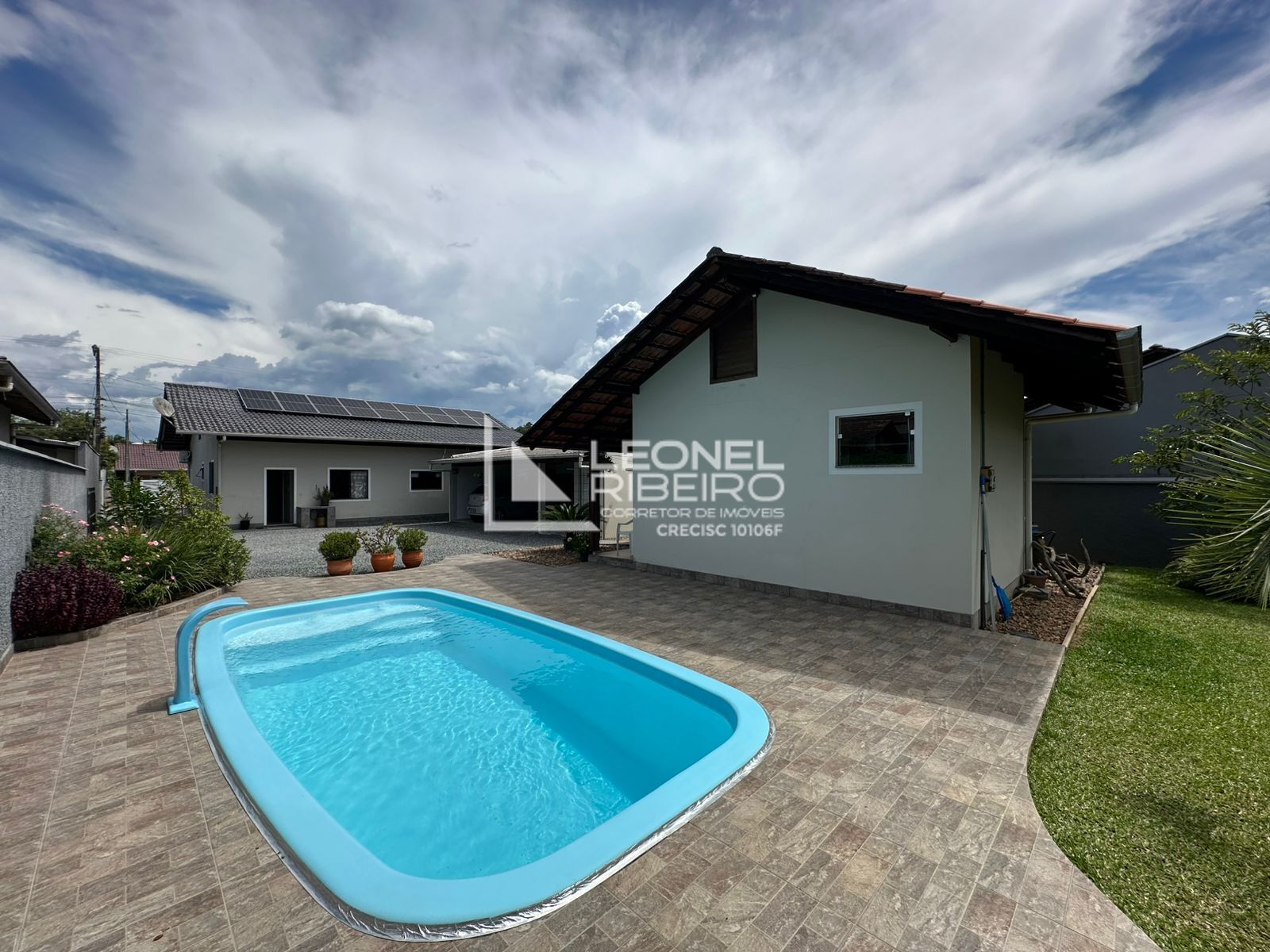 Linda casa com piscina à venda em rua residencial e tranquila, no bairro Pomeranos em Timbó–SC.