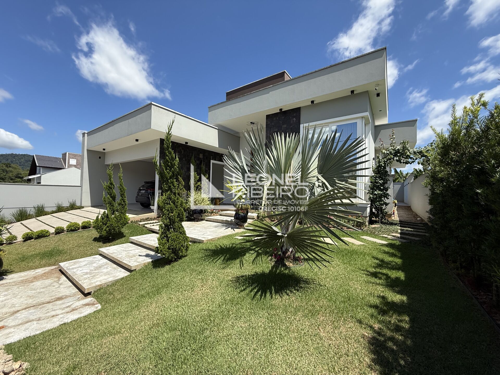 A casa dos seus sonhos! Com linda fachada moderna e 100% plana, à venda em loteamento de alto padrão no bairro das Capitais em Timbó!