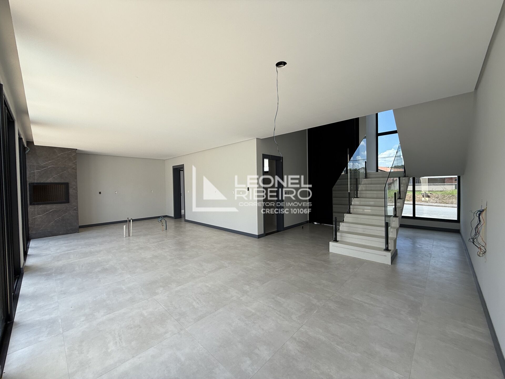 - Living amplo integrado à cozinha com churrasqueira e preparação para ilha;